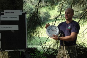 Our last tutorial for the day was Instructor Andy sharing ways of navigating using the moon, stars, flora, fauna…pretty much anything but a compass. There were loads, including the watch method (good for impressing people), using the stars (handy at night, obviously) and the stick in the ground method which takes an afternoon to do so isn’t much use on the move. Some of the things he said were so blindingly simple yet it took someone to tell you for you to realise. The easiest to remember and most obvious once you heard it though was navigating using the sun. We all know the sun rises in the East and sets in the West (we did all know that, right?) but also it travels through the sky South of the U.K. Knowing where the sun is, has been and is going makes it very easy to orient yourself and a map. Obviously it isn’t exact and changes a little with the seasons but in terms of facing the right direction it’s a great thing to remember!