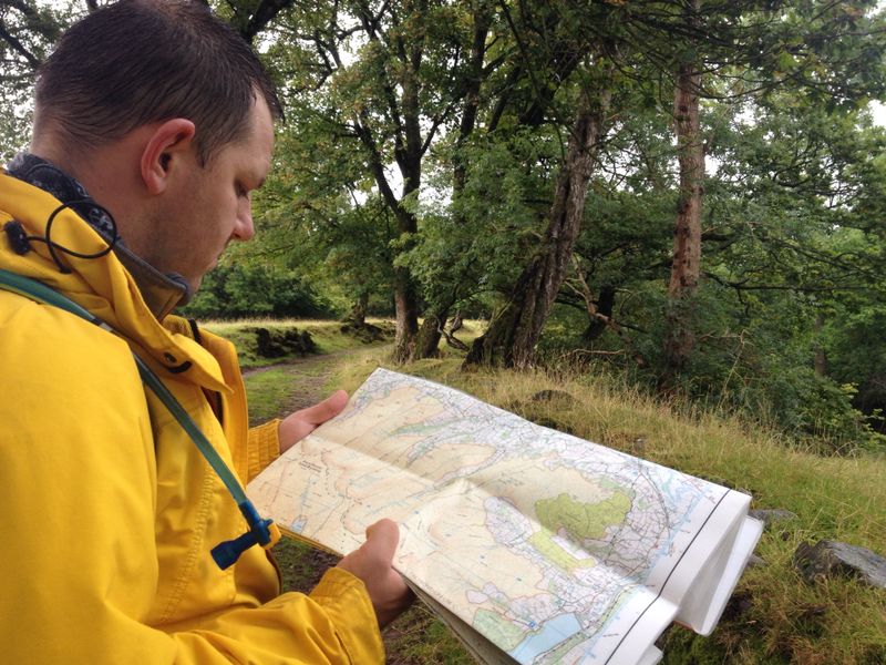 At this point the weather took a turn for the worse! The wind had been almost comical in the way it threw us around, but when it was driving stinging rain sideways it wasn’t quite so funny! Somehow though we laughed our way through it and as soon as the opportunity arose to drop down off the ridge I took it. (never underestimate the value of navigation, it’s not just for getting home, but getting home the best way and often not the way you planned!) Almost as soon as we lost height the rain eased and the wind disappeared, leaving us with a nice valley walk out alongside a rushing stream and Claire’s favourite outdoor feature, trees. (weirdo)