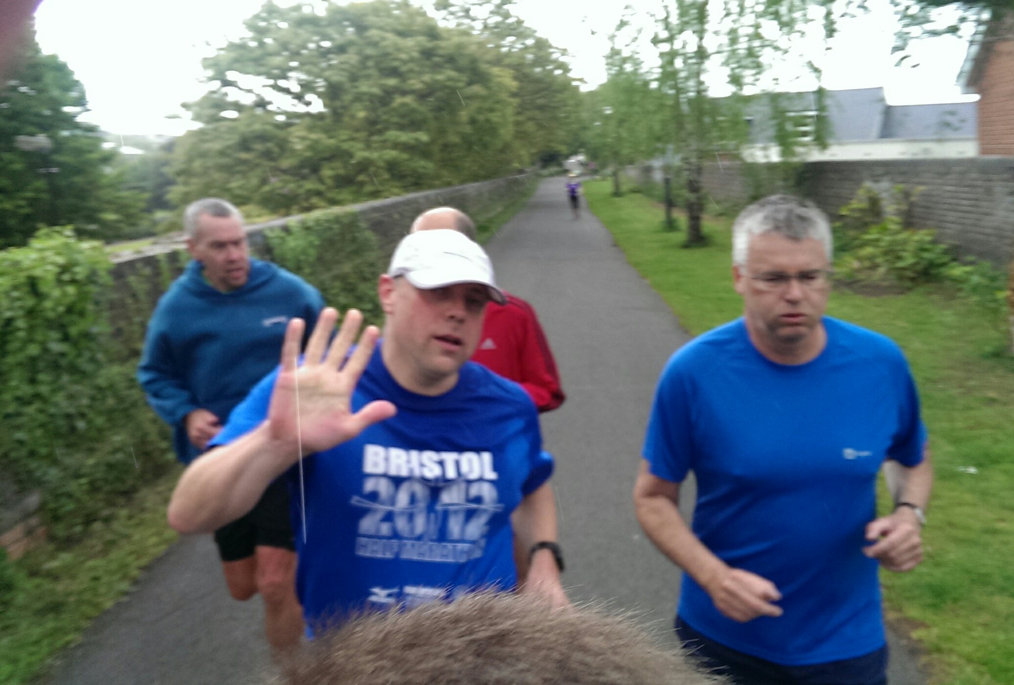 As the first batch of company left I knocked off a few miles with Jackie, who is training for Race to the Stones, a 100km trail ultra. Her weekend of running made my 20 miles look like a walk in the park, great motivation! Before long we were joined again, by club mates Glen and Anne-Marie (one having just done Krakow Marathon and the other training for a 5 day ultra, The Forces March…what an inspirational bunch to roll with!) and Thunder Run team mate Foz…if you’d told us 2o years ago when we left school we’d be distance running together in our late thirties I think we’d both have laughed in your face!